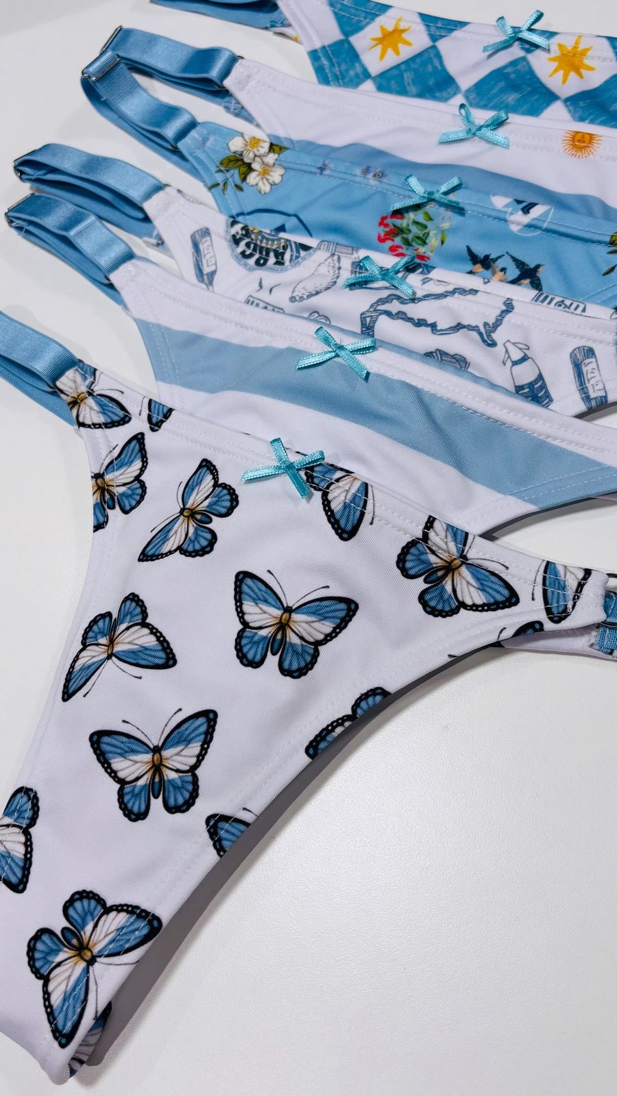 Bombachas diseñadas para enamorar: estampas en celeste y blanco, detalles delicados y un calce cómodo que tus clientas van a elegir todos los días. Una línea que combina tendencia, identidad y alta rotación en el punto de venta.